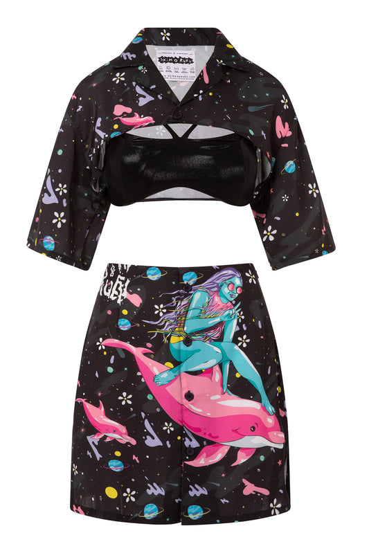 Galaxy Dolphin Surfer Short Dress