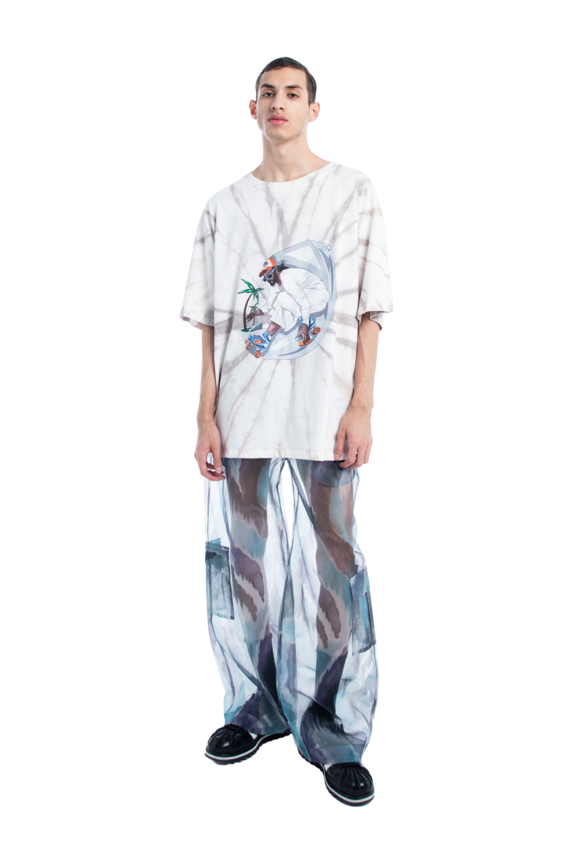 Multicolored T-shirt with graphics with brand logo at the back underneath the neckline